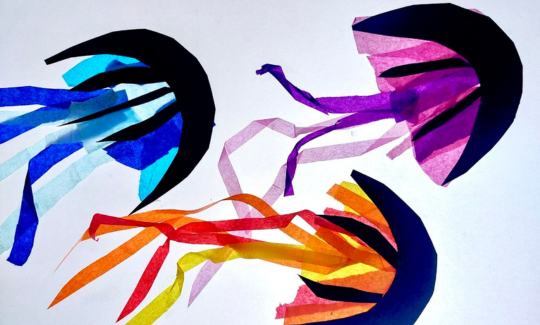 בסדנה ניצור תמונת ויטראז' לוכדת שמש לתלייה על חלון, שתזכיר לנו את הצבעוניות והשקיפויות של הים והיצורים החיים בו. נעבוד עם ניירות פרגמנט ומשי בשכבות ולעומתם, נוסיף נייר שחור אטום - למשחק מדליק עם האור!