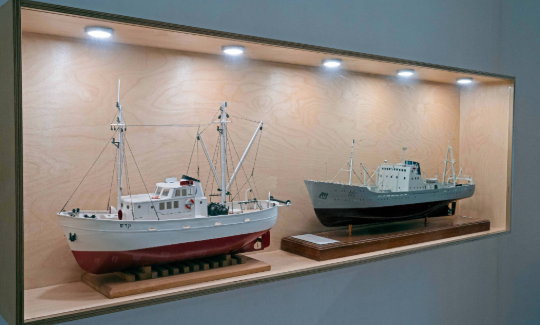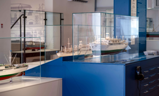 На выставке представлены модели нескольких морских судов ЦИМ, предназначенных для различных целей. Первое судно, полученное в рамках соглашения, “Даган”, как и теплоход “Ампааль”, использовалось для перевозки грузов. Суда “Исраэль” и “Цион” предназначались для транспортирования и пассажиров, и грузов, в то время как “Йерушалаим” выполнял функции только пассажирского судна. Судно “Гар Гилад”, принадлежащее компании “Эль-Йад”, использовалось для перевозки товаров и морозильных камер. На выставке также представлены важнейшие моменты в судьбах кораблей, задокументированные в дневниках современников, новостях, фотографиях и рекламных буклетах.